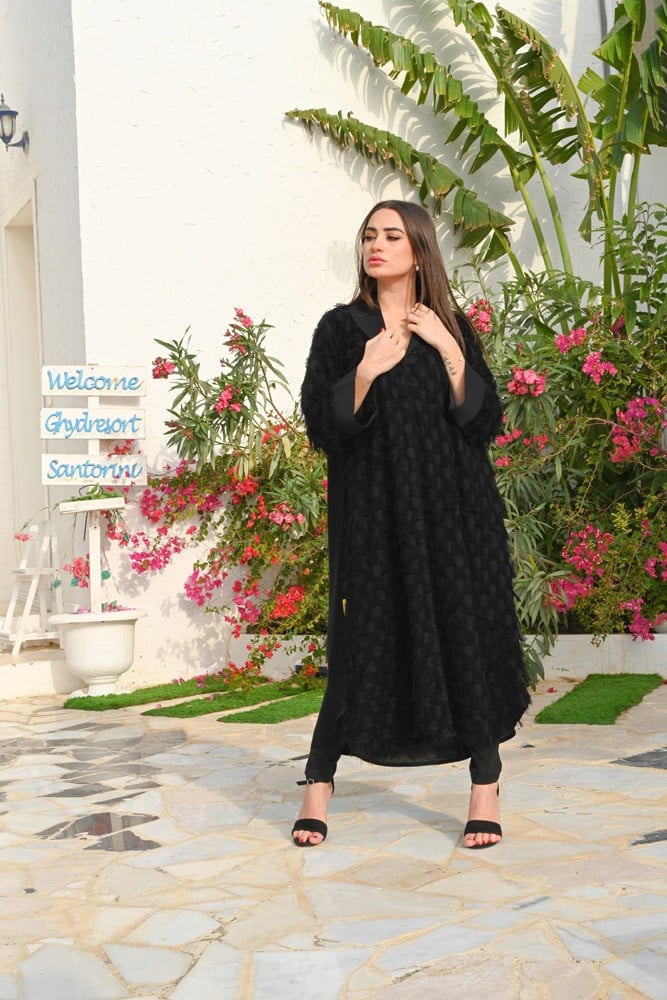 - وصف الموديل: عباية بطرحة ازرار موديل قصير تأتي بهدب من الامام بتربيعه ناعمه