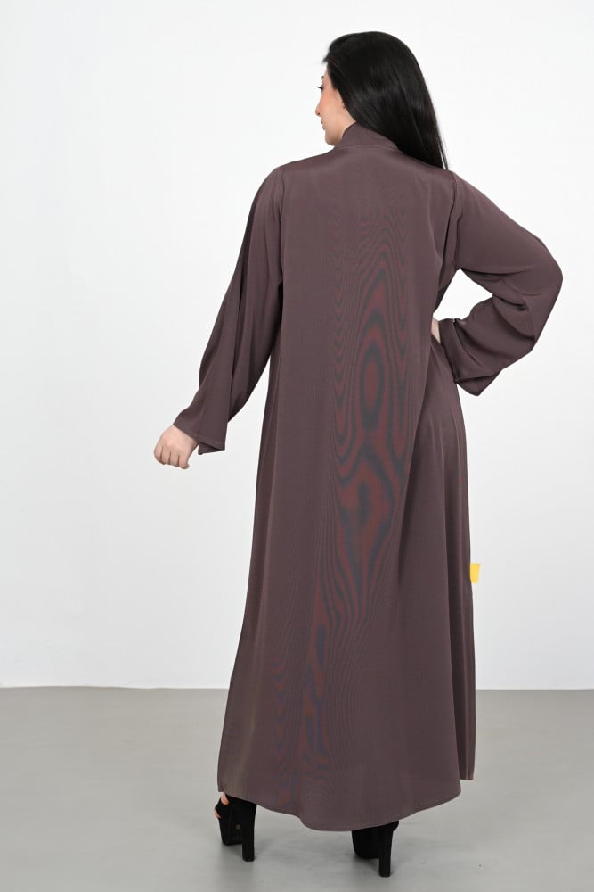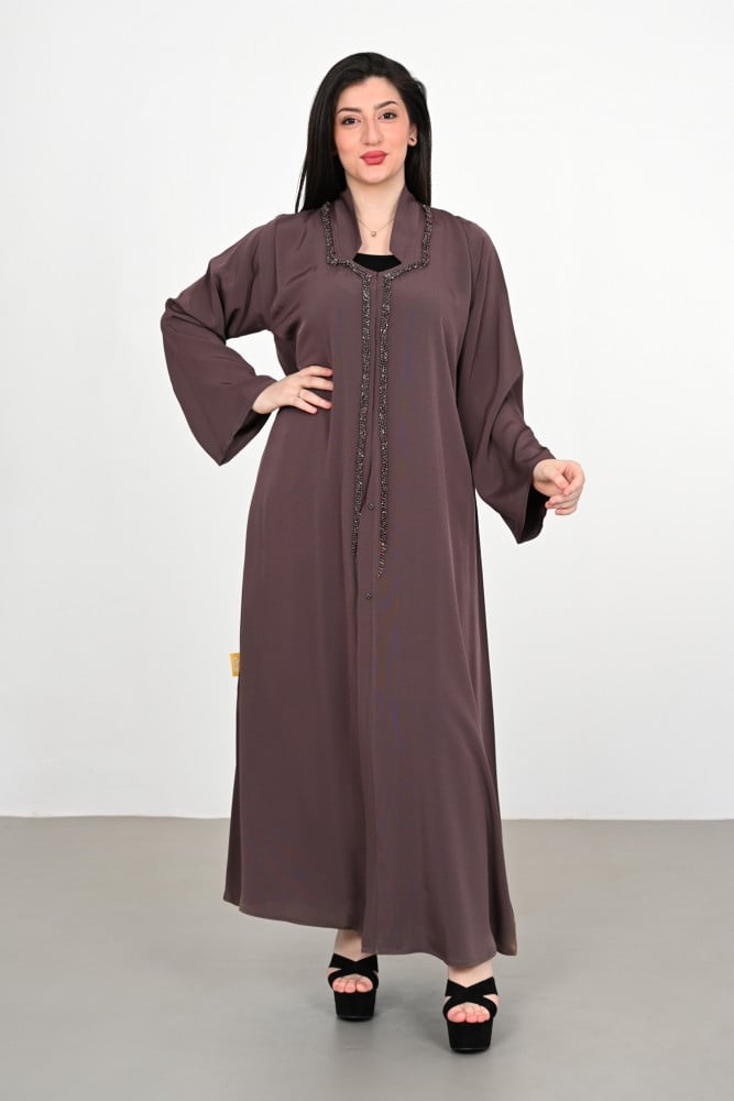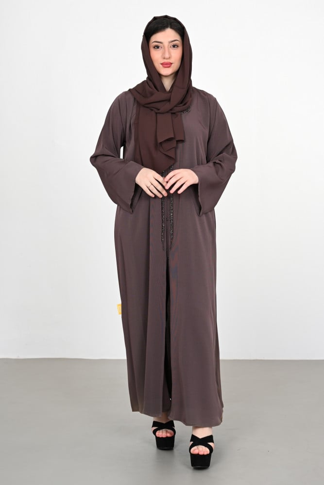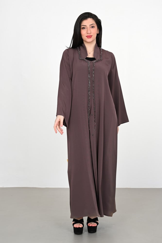 - وصف الموديل; عباية بطرحة ازرار ياقة تأتي بتطريز كرستال بالأمام