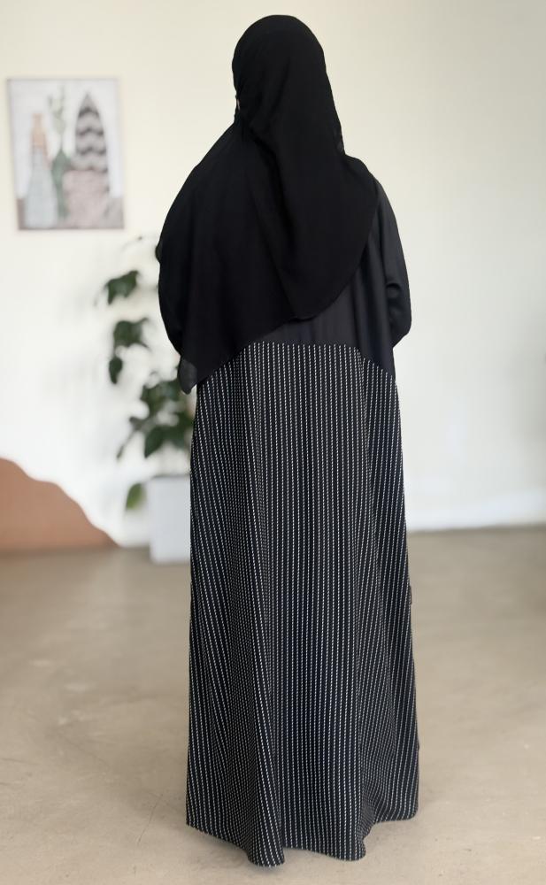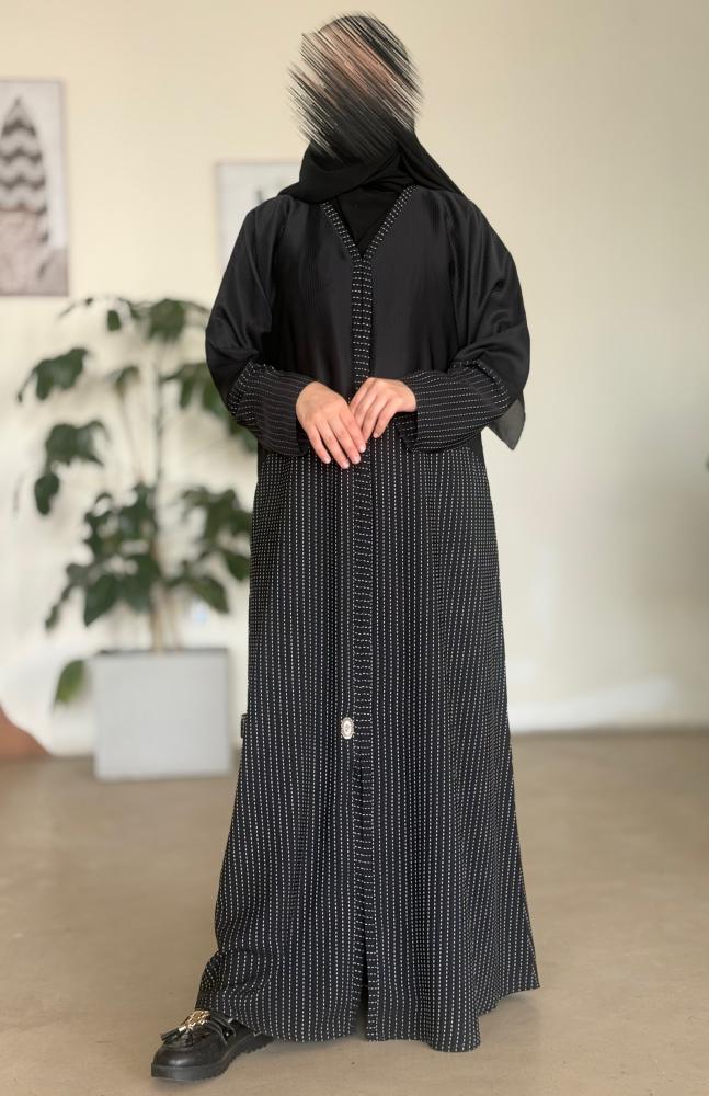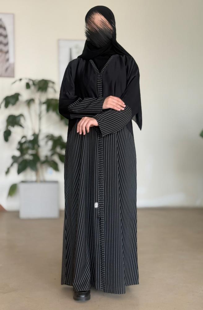 الوصف : عباية بطرحة بدر زرارات من الامام قماش مقلم نواعم كوري على الصدر + قماش صالونه منقط