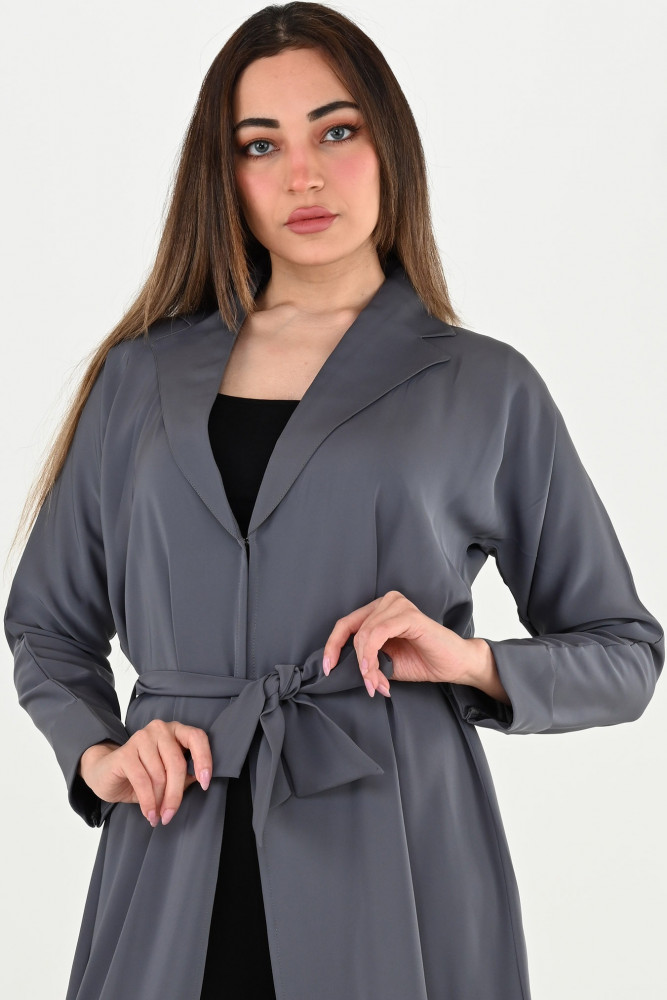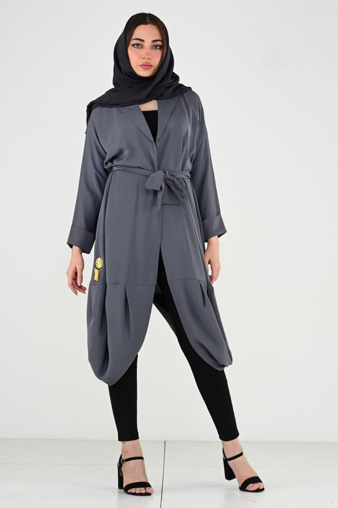 - وصف الموديل: عباية بطرحة قصير ربط كم مصفوط لون رصاصي