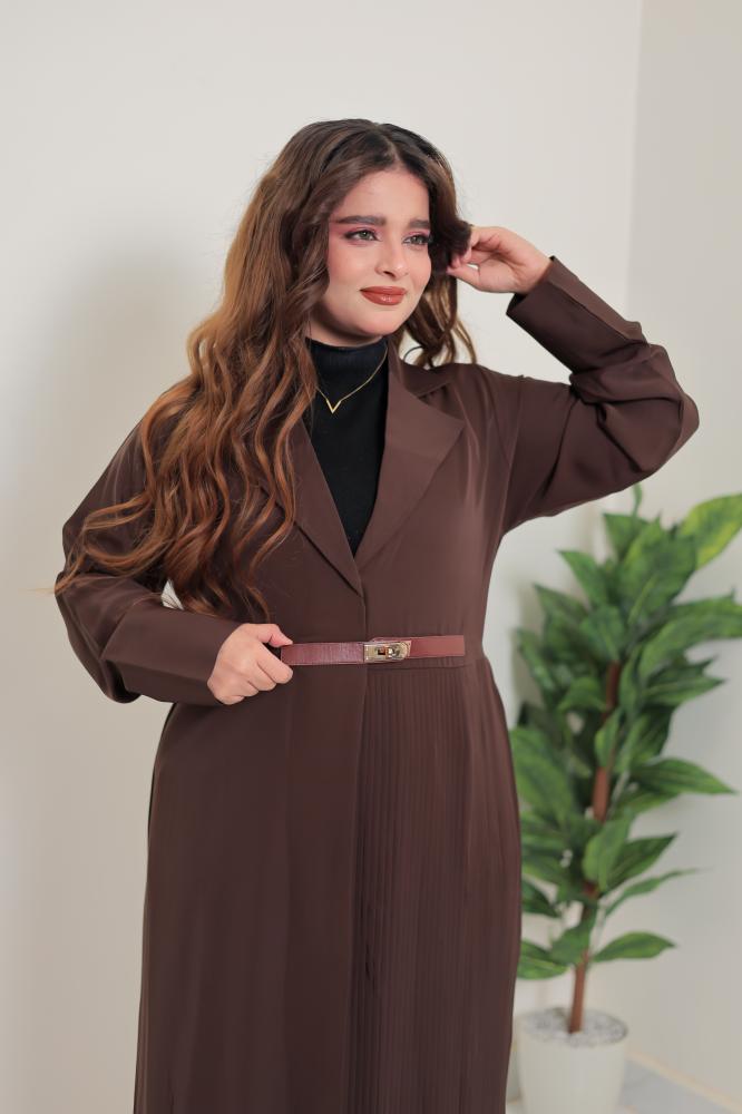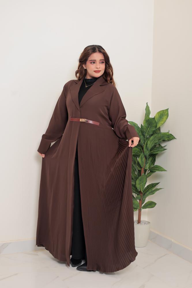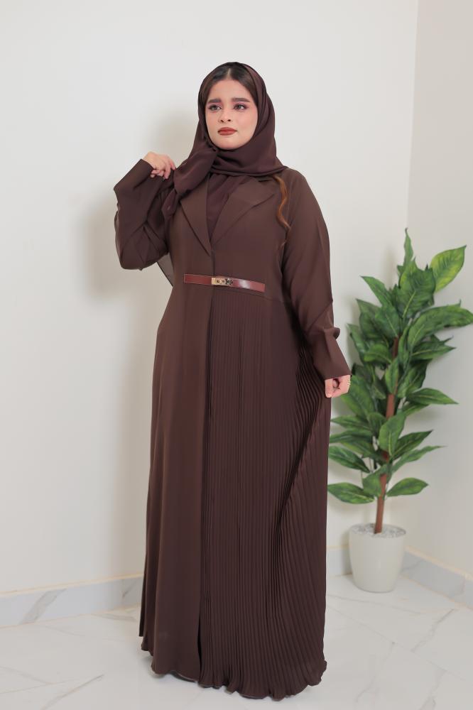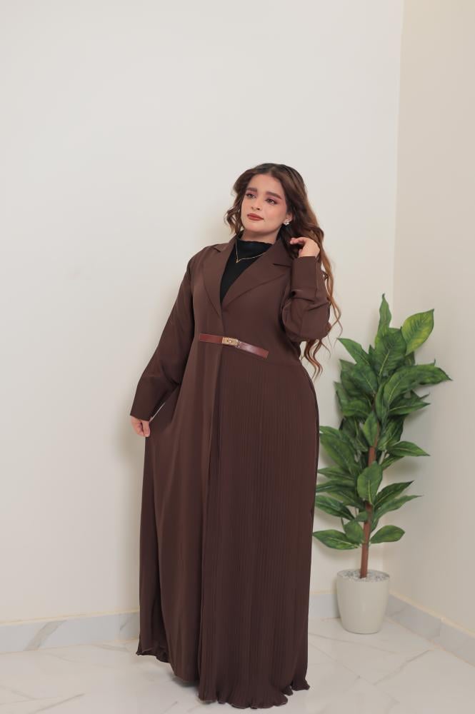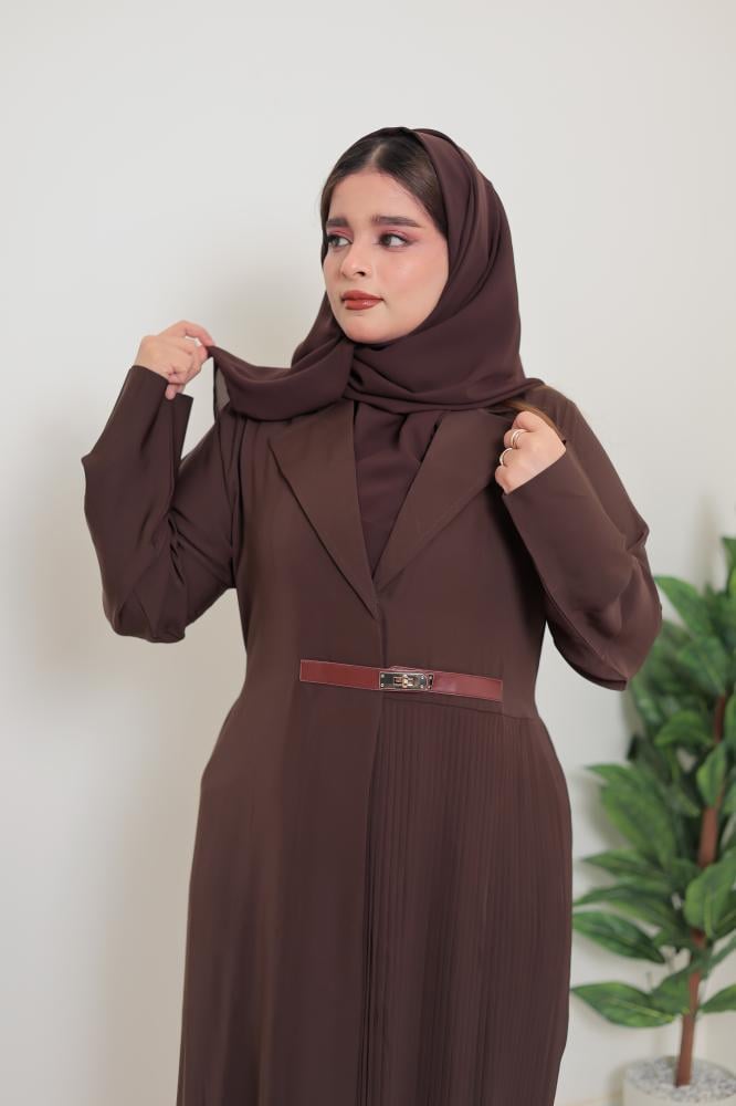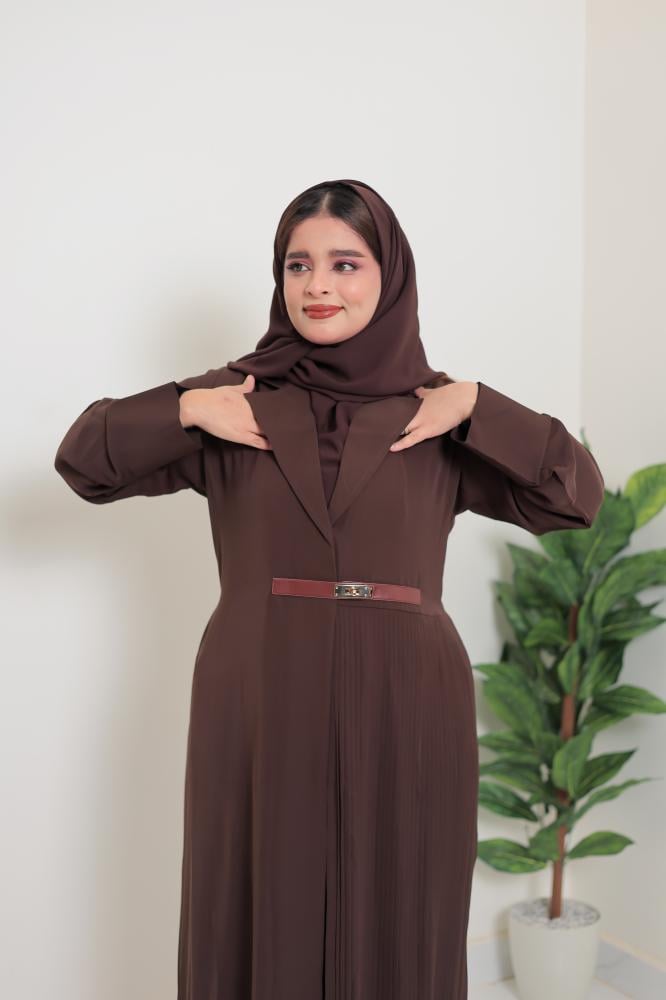 وصف الموديل: عباية قلاب من الامام كسرات وخلف حزام جلدنوع القماش: حرير مصدر القماش: كوريامقاس الطرحة: 200 سم × 75 سم بلد الصنع : السعودية