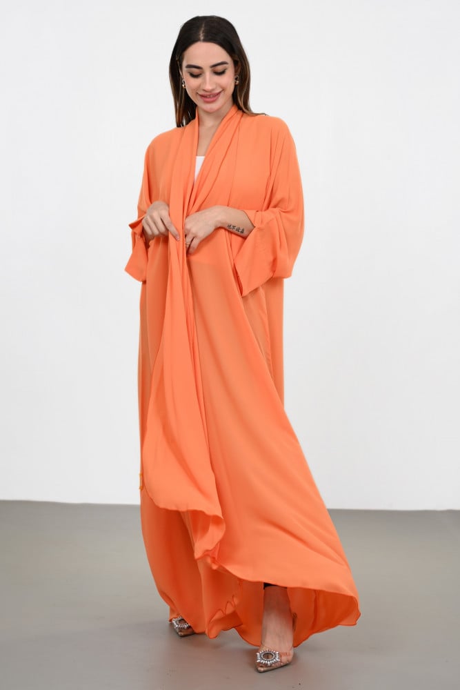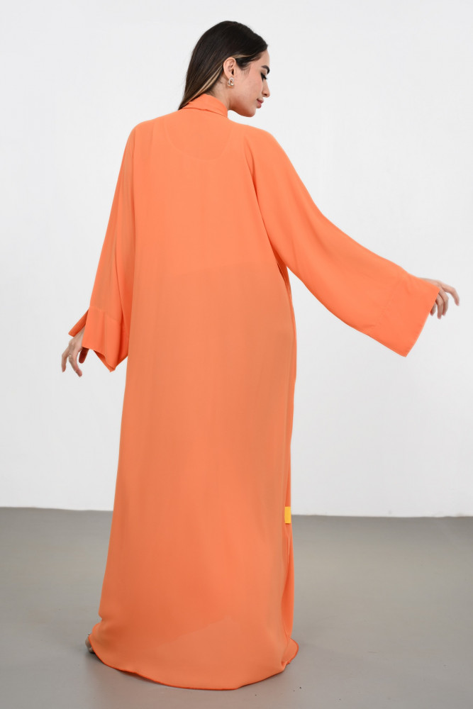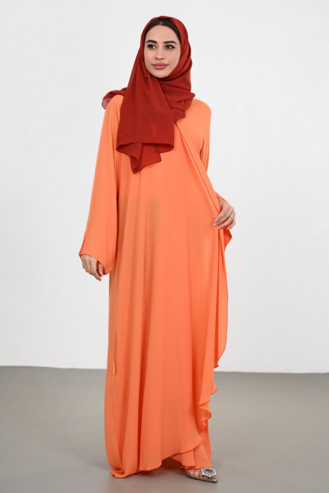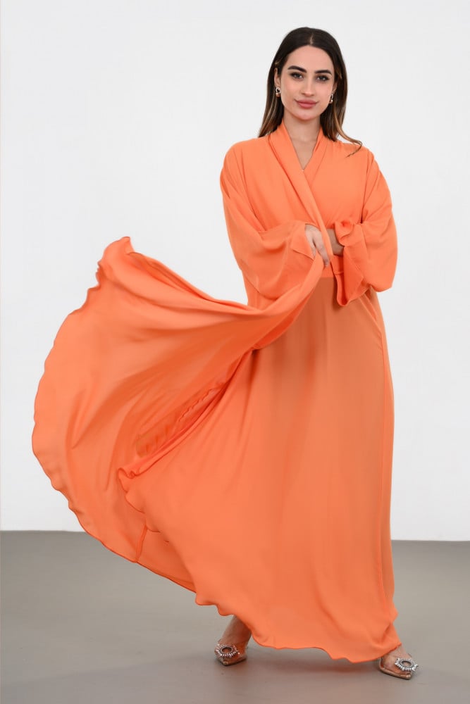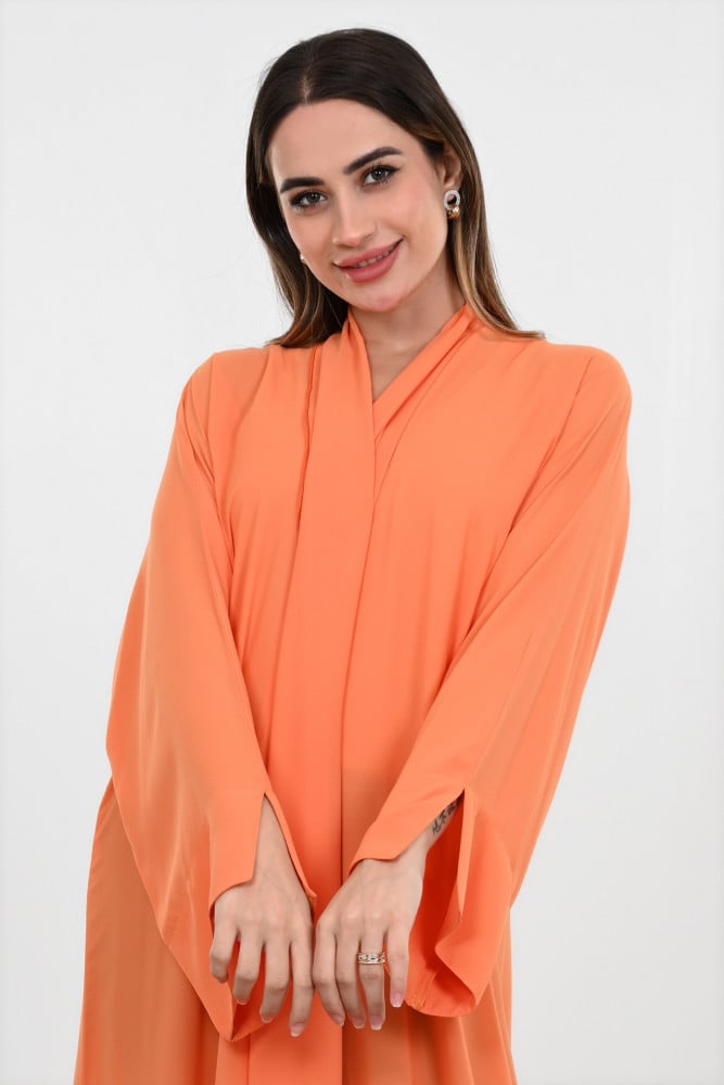 • وصف الموديل; عباية بطرحة لف مصنوعة من قماش الحرير