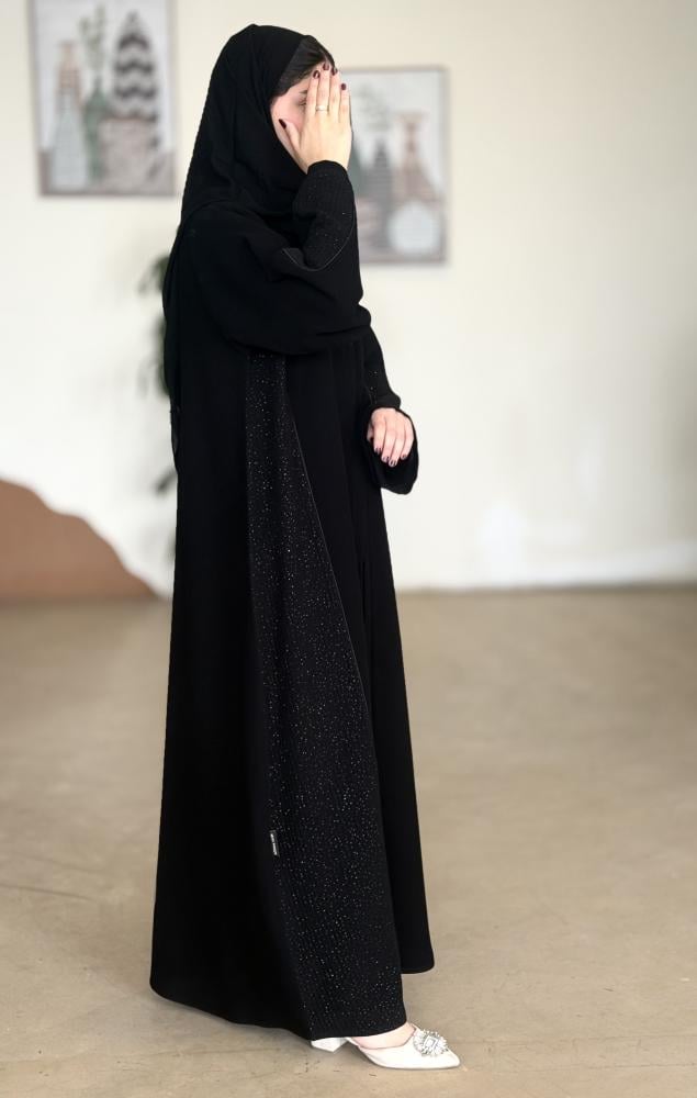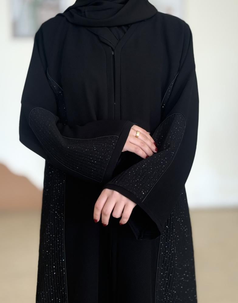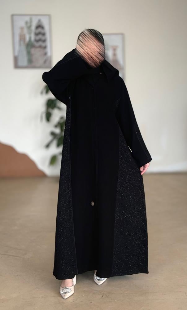 الوصف : عباية بطرحة زرارات جوانب لمعه مع الاكمام