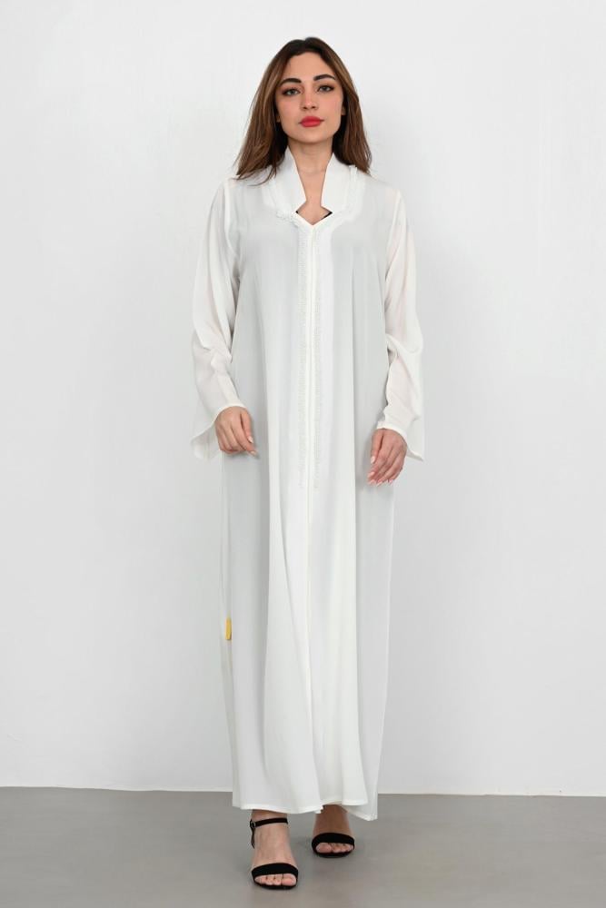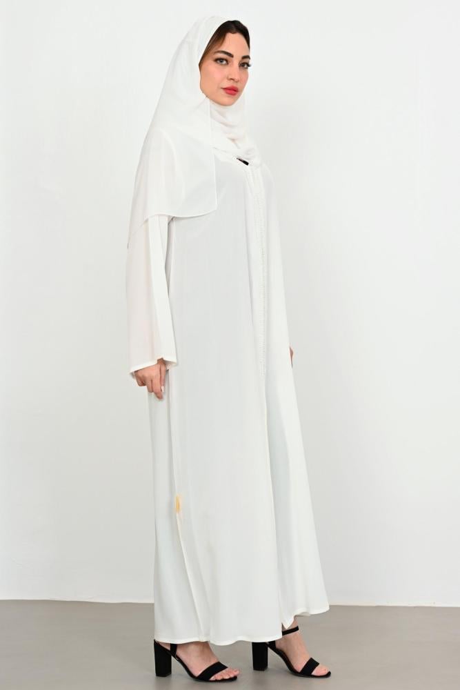 - وصف الموديل; عباية بطرحة ازرار ياقة شغل خرز بالأمام