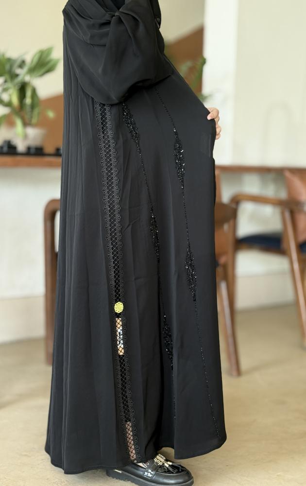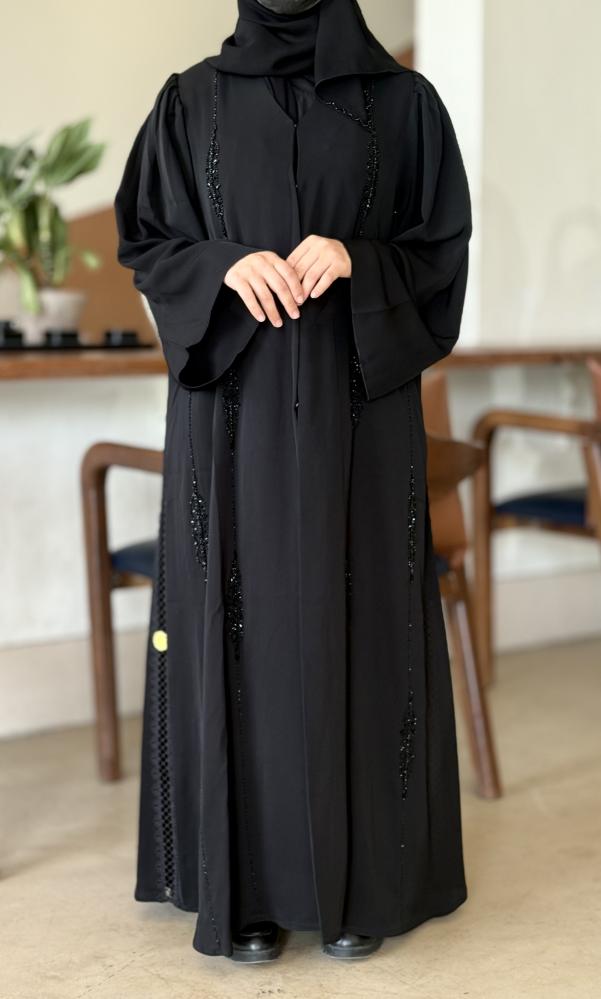 الوصف : عباية بطرحة زرارات من الامام شغ يدوي خرز من الجوانب كلفة مخرم