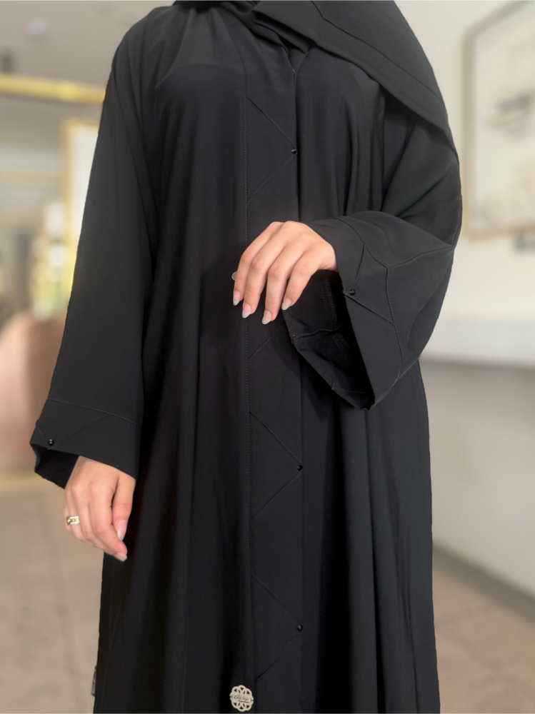 - وصف الموديل: عباية زرارات من الامام مع كرستال