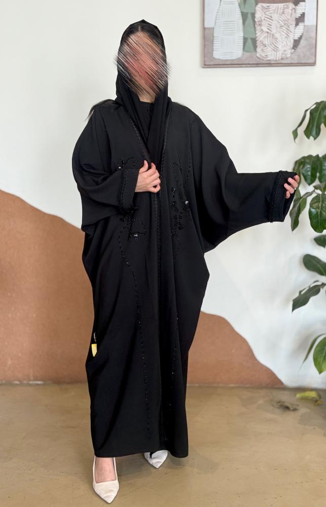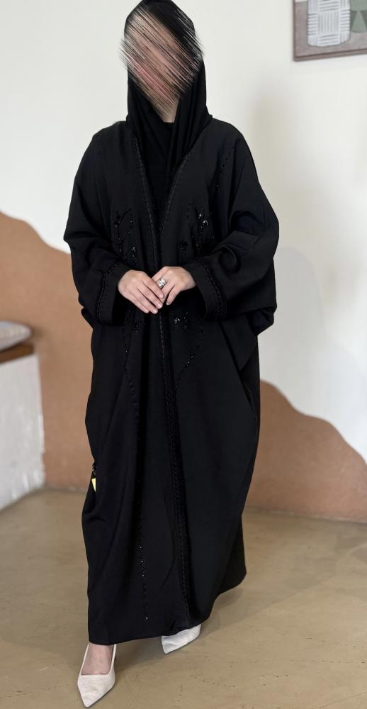 الوصف: عباية بطرحة لف كرستال على الصدر وشريط الى الاسفل مع الكم