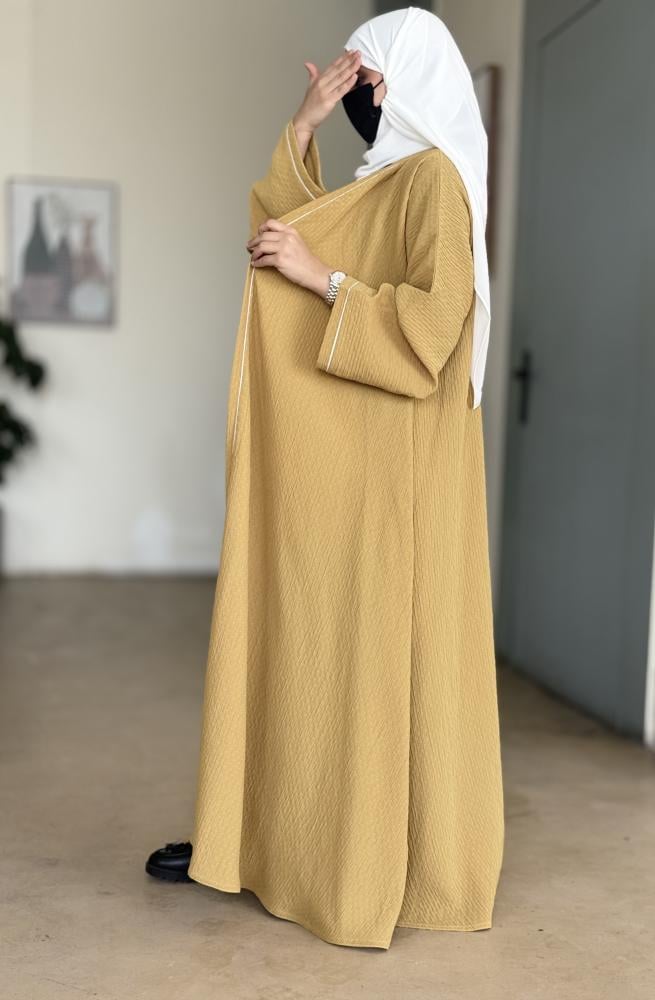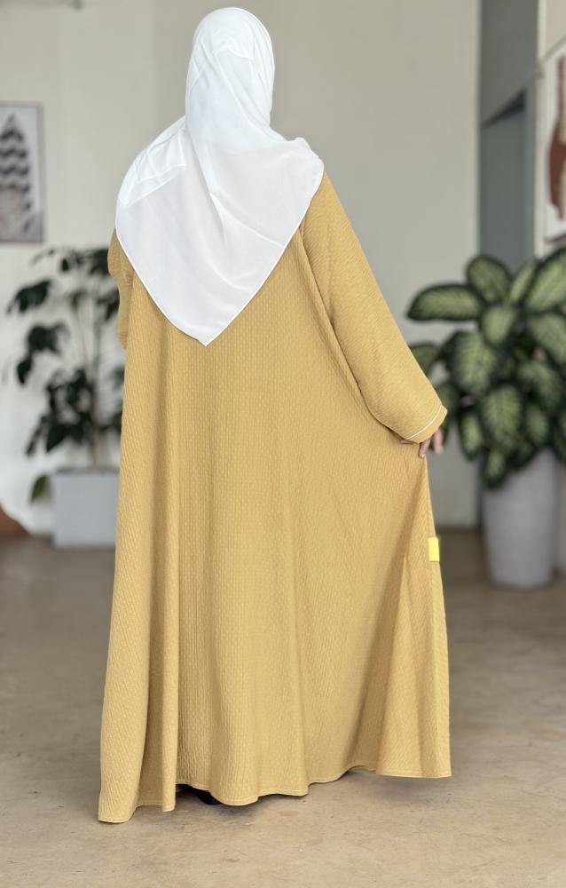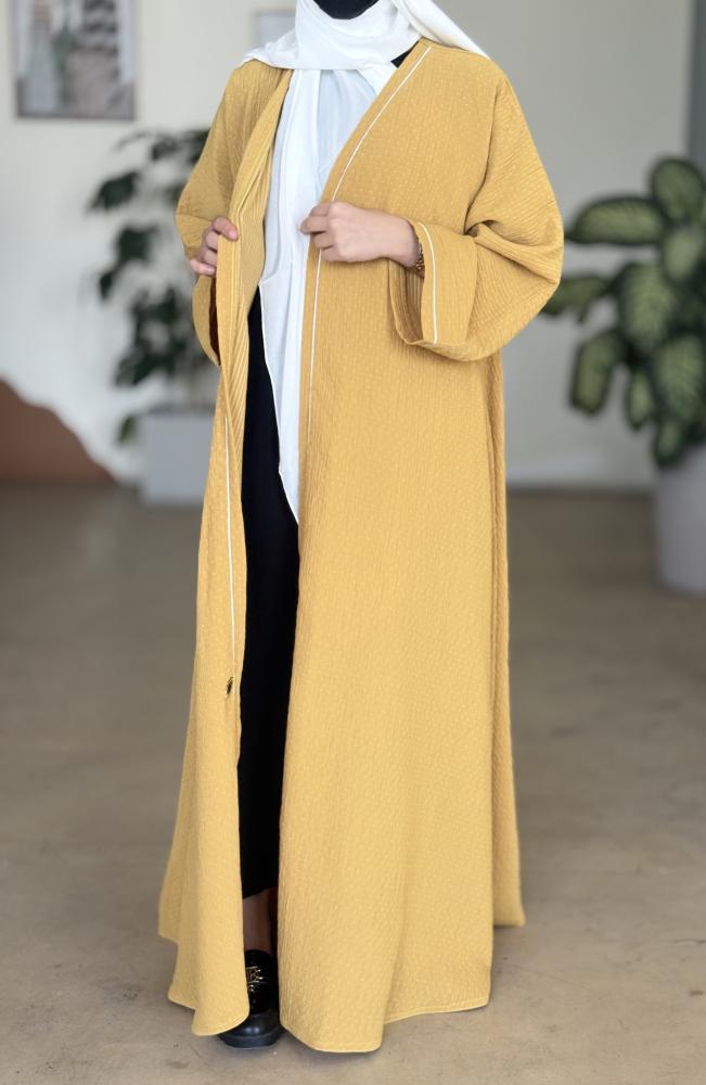 الوصف : عباية بطرحة قماش فوكر منقط اصفر