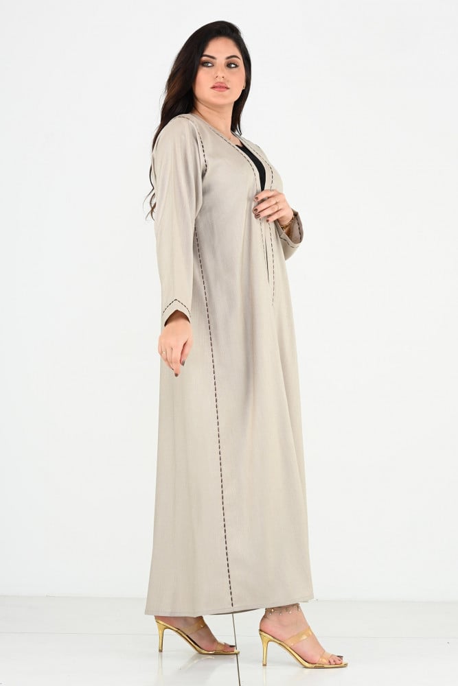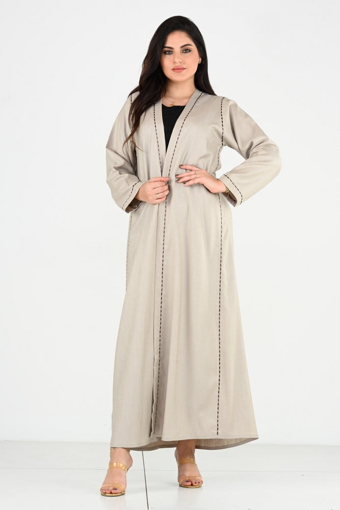 - Model description: Abaya with a veil wrapped around the front and sleeves, beige color